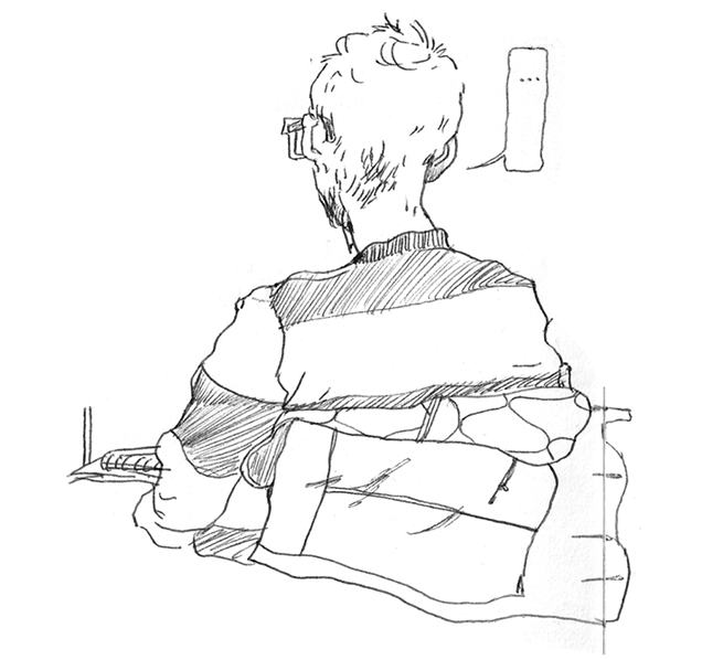 Throughout the conference, as I respond to each talk and experience them through drawing, I begin to use images and the drawing process to unpack the signals and noises of the event itself. Finding myself drawn to the interactions between humans and the muddle of modern technological discourse, I fill my pages with both images and words. In this way, drawing acts as a selective method for boiling down information, and as a bridge between the moment of creation and the future self – as a way to separate, through embodied making, signals and noise.