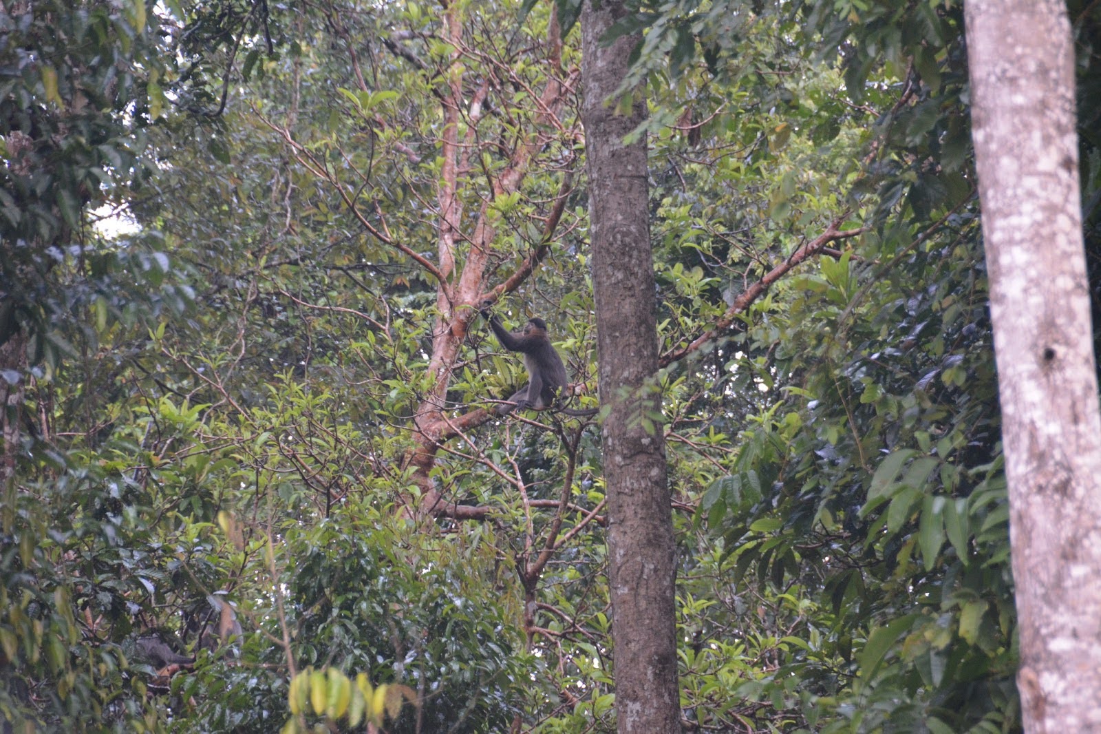 Fig. 3 A hybrid primate in Northern Borneo forages for breakfast, co-constructing her fragmented habitat. Photo by author.