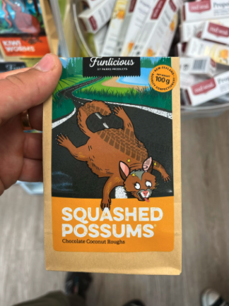 Figure 2. A bag of chocolate named “Squashed Possums.”