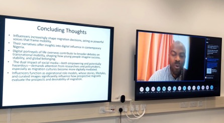 A virtual presentation in progress as Samuel Uwem Umoh shares insights on social media content creators and migration in Nigeria