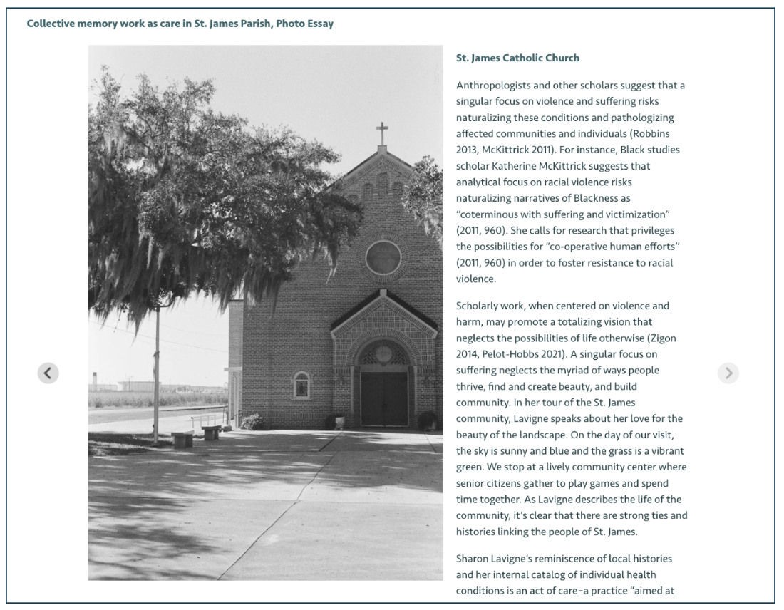 Here, in Louisiana, memory work—that is, practices that take place in informal and formal spaces (Caswell 2021)—becomes a way of honoring losses and refusing demands for further sacrifice, and thus “making sacred” the community of St. James. In seeking to support RISE’s ongoing efforts, our conversation turned toward the kinds of knowledge infrastructures that we, as researchers, might collaboratively design–resources that could sustain memory work and connect it more deliberately to teaching and pedagogy.